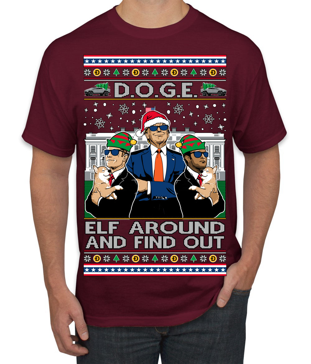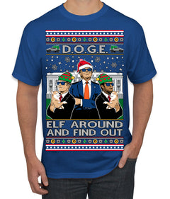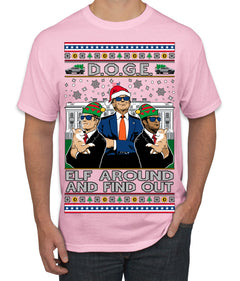 Doge Elf Around and Find Out Trump Elon Vivek MAGA Ugly Christmas Sweater Men's T-Shirt