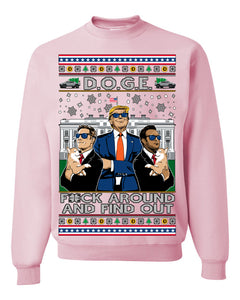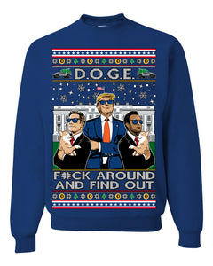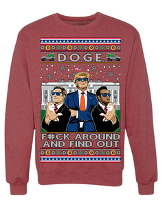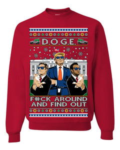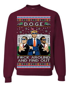 Doge F Around and Find Out Donald Trump Elon Vivek MAGA Ugly Christmas Sweater Crewneck Sweatshirt