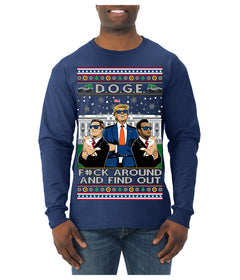 Doge F Around and Find Out Donald Trump Elon Vivek MAGA Ugly Christmas Sweater Mens Long Sleeve Shirt