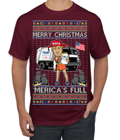 Donald Trump Merry Christmas Merica's Full Garbage Truck Ugly Christmas Sweater Men's T-Shirt