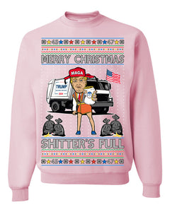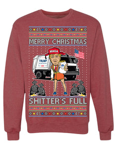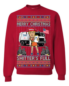 Donald Trump Merry Christmas Shitter's Full Cousin Eddie Ugly Christmas Sweater Crewneck Sweatshirt