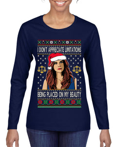 Don't Appreciate Limitations Being Placed Donna TV Show Parody Ugly Christmas Sweater Womens Graphic Long Sleeve T-Shirt