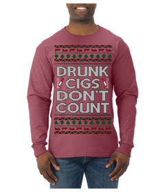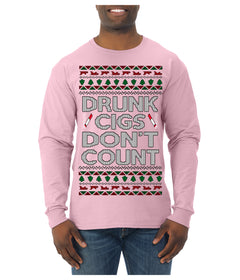 Drunk Cigs Don't Count Funny Cigarette Smoker Cig Ugly Christmas Sweater Mens Long Sleeve Shirt