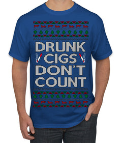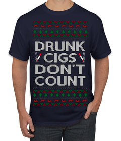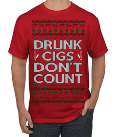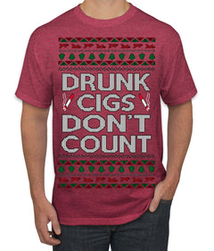 Drunk Cigs Don't Count Funny Cigarette Smoker Cig Ugly Christmas Sweater Men's T-Shirt