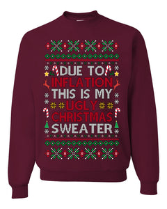 Due to Inflation This is My Ugly Christmas Sweater | Funny Ugly Christmas Sweater Crewneck Sweatshirt