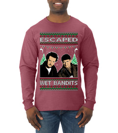Escaped Bandits Classic Home Holiday Movie Ugly Christmas Sweater Mens Long Sleeve Shirt