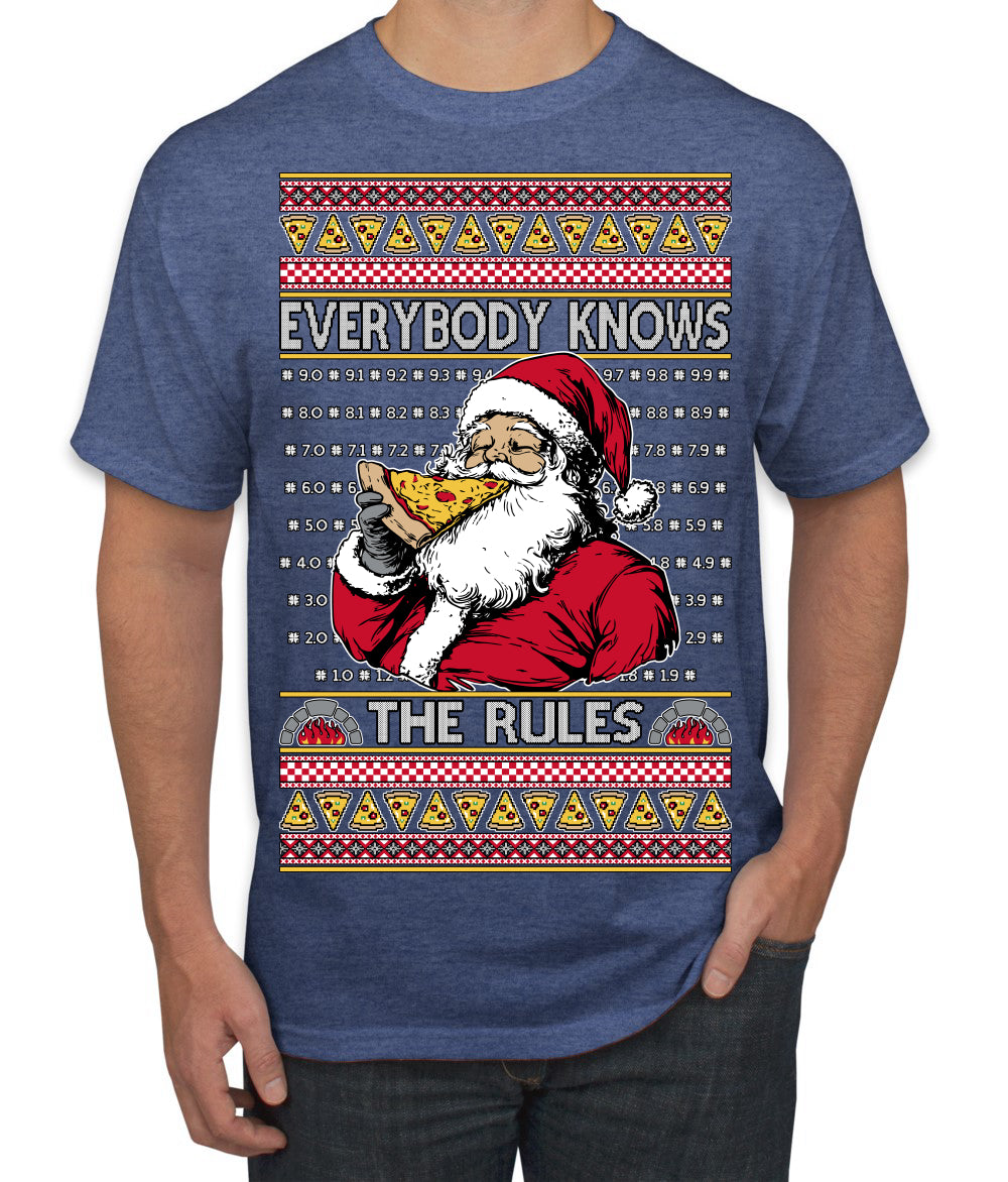 Everybody Knows the Rules Funny Santa Claus Pizza Score Ugly Christmas Sweater Men's T-Shirt