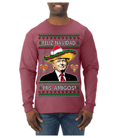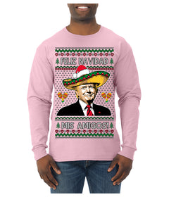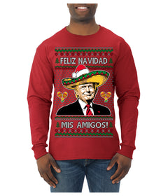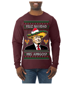 Feliz Navidad Mi Amigos Funny President Ugly Christmas Sweater Mens Long Sleeve Shirt