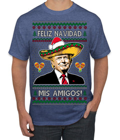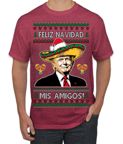 Feliz Navidad Mi Amigos Funny President Ugly Christmas Sweater Men's T-Shirt