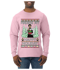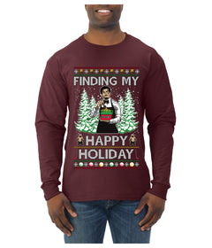 Finding My Happy Holiday, Ugly Christmas Sweater Mens Long Sleeve Shirt