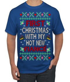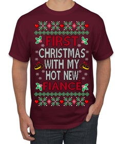 First Christmas With My Hot New Fiance Classic Newlywed Ugly Christmas Sweater Men's T-Shirt