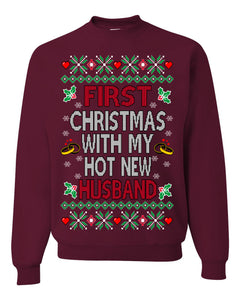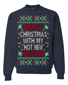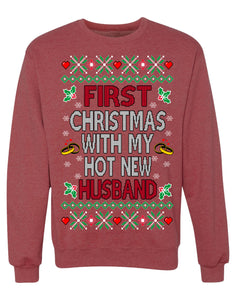 First Christmas With My Hot New Husband Classic Newlywed Ugly Christmas Sweater Crewneck Sweatshirt