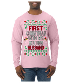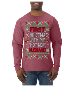 First Christmas With My Hot New Husband Classic Newlywed Ugly Christmas Sweater Mens Long Sleeve Shirt