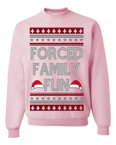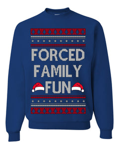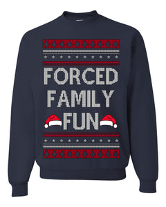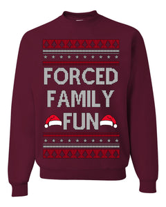 Forced Family Fun, Xmas Holiday Funny Ugly Christmas Sweater Crewneck Sweatshirt