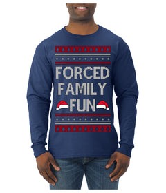 Forced Family Fun, Xmas Holiday Funny Ugly Christmas Sweater Mens Long Sleeve Shirt