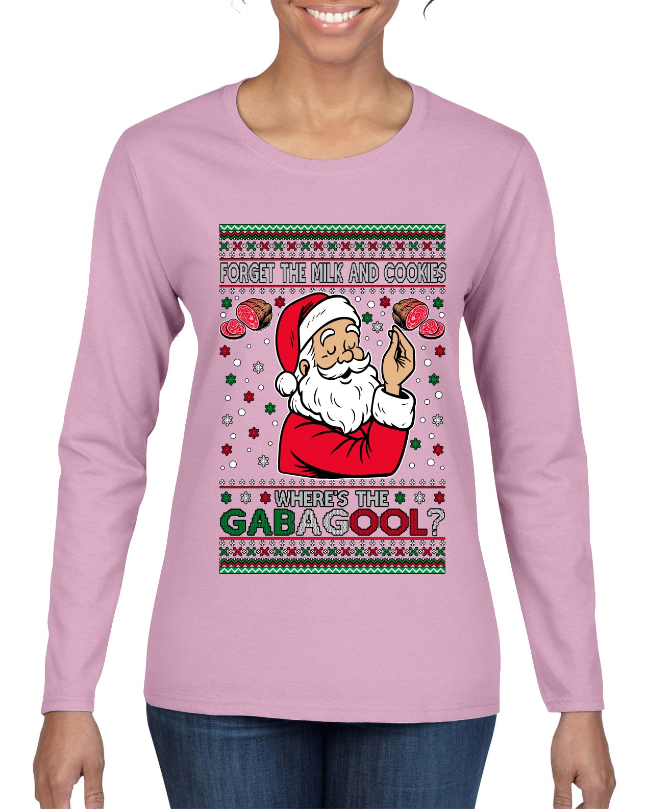 Forget The Milk And Cookies, Where's The Gabagool? Funny Italian Capicola, Italian American Slang Christmas Sweater, Ugly Christmas Sweater Womens Graphic Long Sleeve T-Shirt