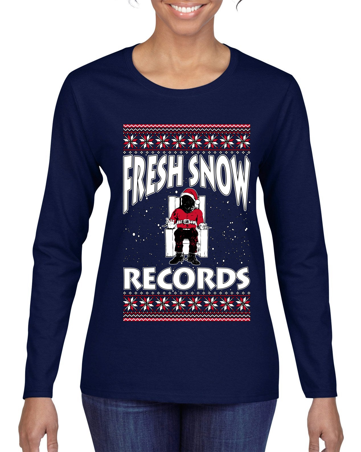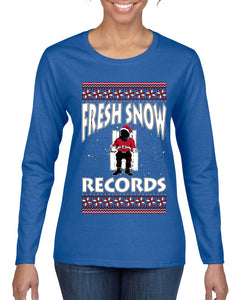 Fresh Snow Records Hip Hop Parody, Ugly Christmas Sweater Womens Graphic Long Sleeve T-Shirt