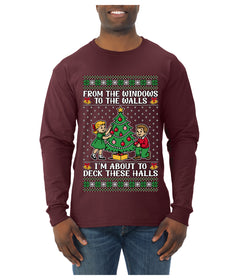 From The Windows To The Walls I'm About To Deck These Halls, Ugly Christmas Sweater Unisex Mens Long Sleeve Shirt