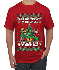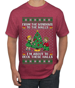 From The Windows To The Walls I'm About To Deck These Halls, Ugly Christmas Sweater Unisex Men's T-Shirt