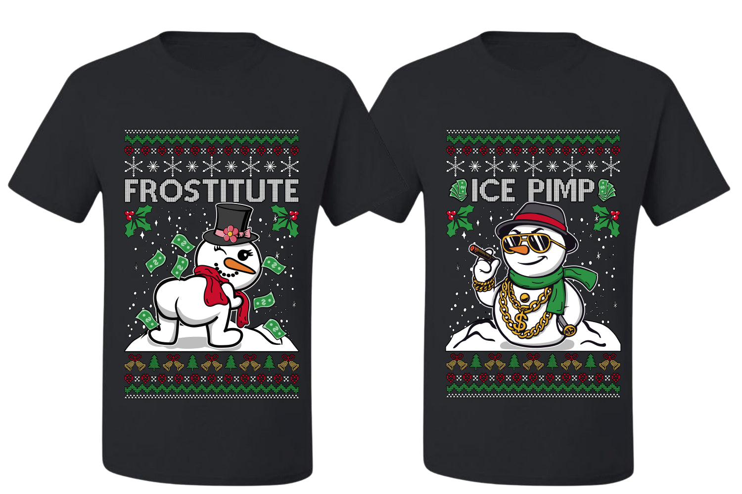 Frostitute Ice Pimp Snowmen Sweater Girlfriend Boyfriend Gift His and Hers Matching Ugly Christmas Couple T-Shirt