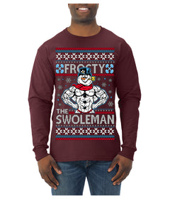 Frosty the Swoleman Funny Workout Lifting Snowman MovieUgly Christmas Sweater Mens Long Sleeve Shirt