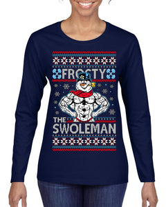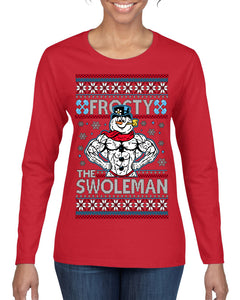 Frosty the Swoleman Funny Workout Lifting Snowman MovieUgly Christmas Sweater Womens Graphic Long Sleeve T-Shirt