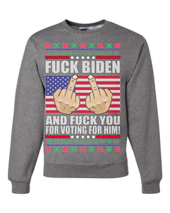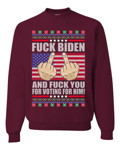 Fuck Biden and Fuck You For Voting For Him Merry Ugly Christmas Sweater Unisex Crewneck Graphic Sweatshirt