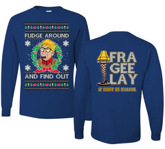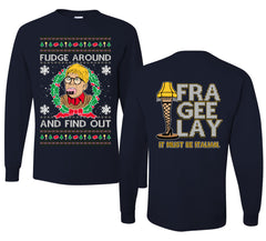 Fudge Around And Find Out Story Ugly Christmas Front and Back Sweater Mens Long Sleeve Shirt