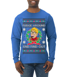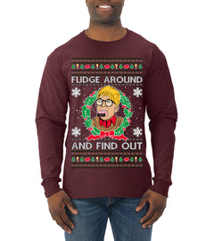 Fudge Around And Find Out Story Ugly Christmas Sweater Mens Long Sleeve Shirt