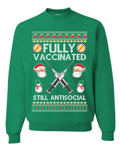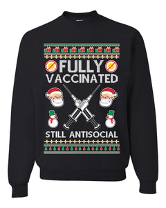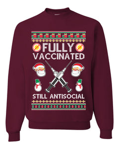 Fully Vaccinated Still Antisocial Ugly Christmas Sweater Unisex Crewneck Graphic Sweatshirt
