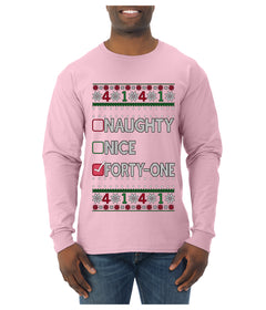 Funny Meme List Naughty, Nice, 41, Ugly Christmas Sweater Mens Long Sleeve Shirt