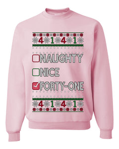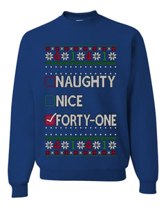 Funny Meme List Naughty, Nice, 41, Ugly Christmas Unisex Sweater, Crewneck Sweatshirts