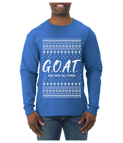 G.O.A.T. God Over All Things, Ugly Christmas Sweater Unisex Mens Long Sleeve Shirt