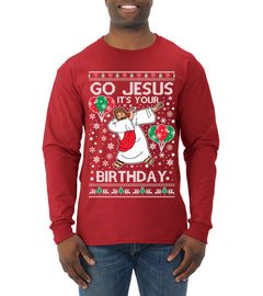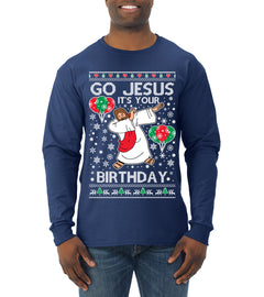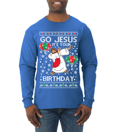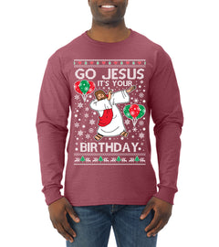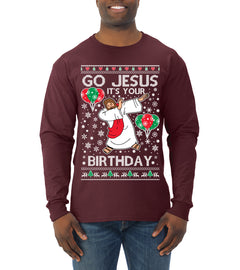 Go Jesus It's Your Birthday Ugly Christmas Sweater Mens Long Sleeve Shirt
