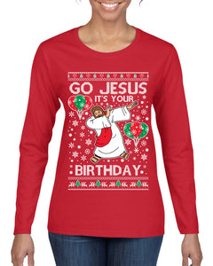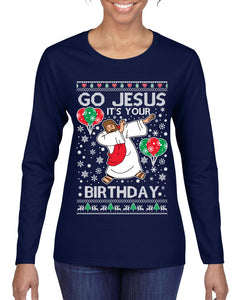 Go Jesus It's Your Birthday Ugly Christmas Sweater Womens Graphic Long Sleeve T-Shirt
