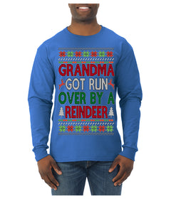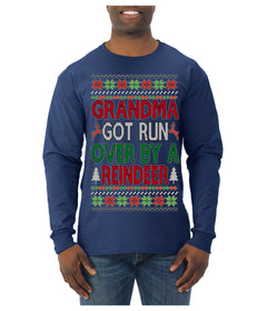 Grandma Got Ran Over by a Reindeer | Classic Xmas Song Holiday Movie Quote Ugly Christmas Sweater Mens Long Sleeve Shirt