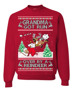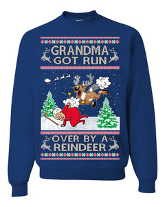 Grandma Got Run Over by a Reindeer, Funny Animated Design Rein Deer Kids TV Song Movie Ugly Christmas Sweater Crewneck Sweatshirt