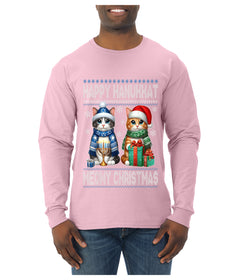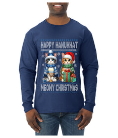 Happy Hanukkat Meowy Christmas, Ugly Christmas Sweater Unisex Mens Long Sleeve Shirt
