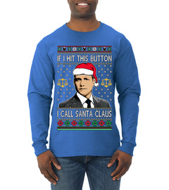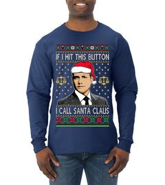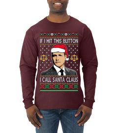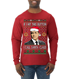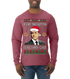 Harvey Hit This Button I Call Santa Specter TV Show Parody Ugly Christmas Sweater Mens Long Sleeve Shirt