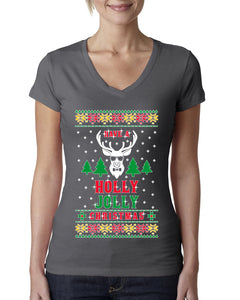 Have A Holly Jolly Christmas Ugly Christmas Sweater Womens Junior Fit V-Neck Tee