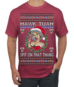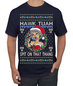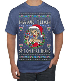 Hawk Tuah Spit On That Thang Mrs Claus Funny Meme Ugly Christmas Sweater Men's T-Shirt