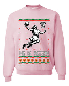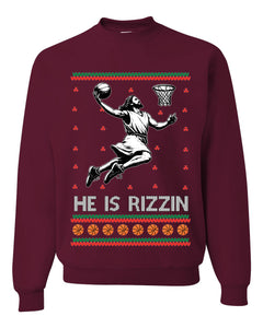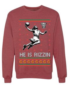 He Is Rizzin, Unisex Ugly Christmas Sweater, Crewneck Sweatshirts