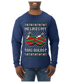 He Likes My Big Bulbs, Ugly Christmas Sweater Unisex Mens Long Sleeve Shirt