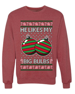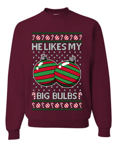 He Likes My Big Bulbs, Unisex Ugly Christmas Sweater, Crewneck Sweatshirts