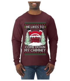 Come Down my Chimney Ugly Christmas Sweater Unisex Unisex Mens Long Sleeve Shirt
