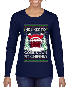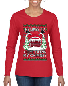 Come Down my Chimney Ugly Christmas Sweater Womens Graphic Long Sleeve T-Shirt