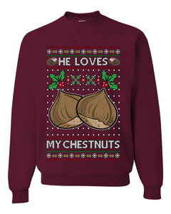 He Loves my Chestnuts, Unisex Ugly Christmas Sweater Crewneck Sweatshirts