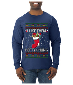 Hefty And Hung Christmas Sweater, Funny Ugly Christmas Sweater Mens Long Sleeve Shirt