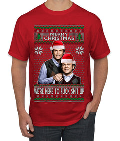 Here To F Stuff Up Step Brothers Holiday Pose Ugly Christmas Sweater Men's T-Shirt
