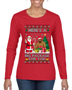 Here's A Big Package For You Santa Christmas Sweater, Ugly Christmas Sweater Womens Graphic Long Sleeve T-Shirt
